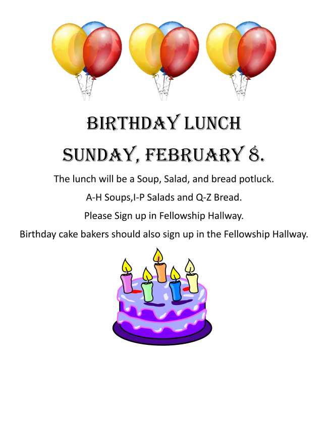 ATTENTION: The birthday luncheon has been moved to February 8th.
