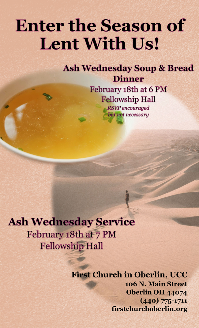 Ash Wednesday Service, Wednesday, February 18th, at 7:00 p.m.