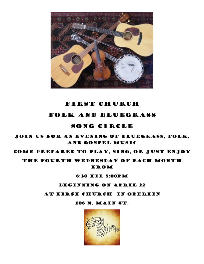 Celebrate spring and meet your community friends at the First church in Oberlin, UCC, at the corner of Lorain St. and 58